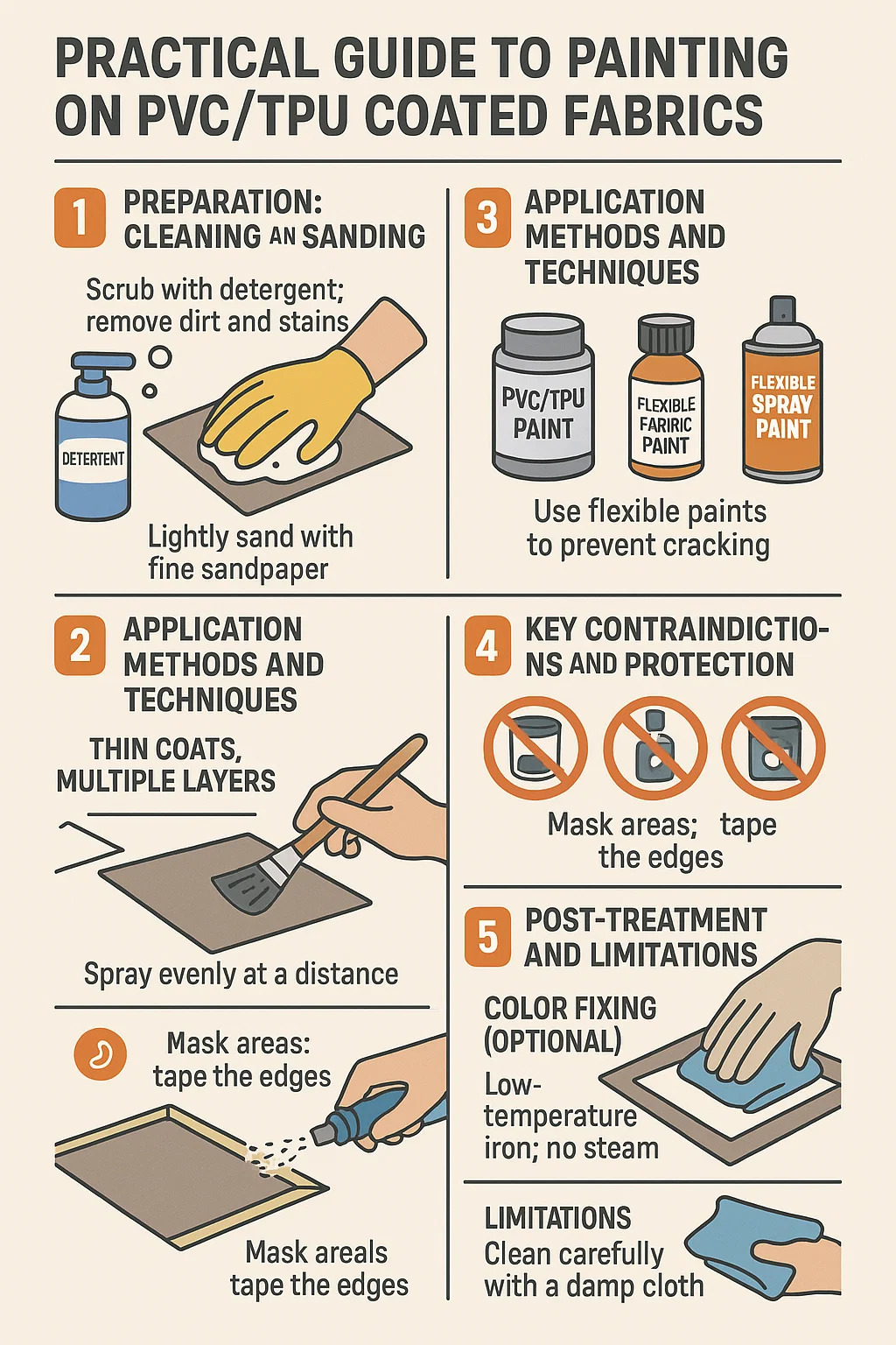 Berikut adalah panduan praktikal untuk melukis Fabrik bersalut PVC dan kain bersalut TPU, menggabungkan pengalaman operasi dan langkah berjaga -jaga yang sama: