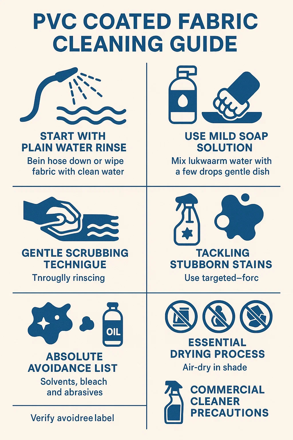 Inilah panduan praktikal untuk pembersihan Fabrik bersalut PVC Berdasarkan pengalaman biasa dan penjagaan bahan: