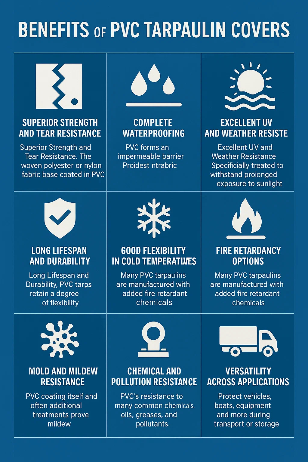 Berikut adalah manfaat utama dari PVC Tarpaulin Cover :